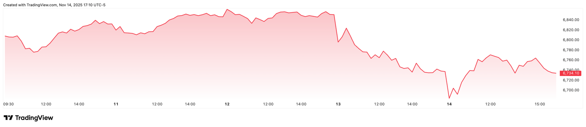 The S&P 500 consolidated around the 6,800-6,850 level during the second week of November, with the Dow Jones breaking above 48,000 for the first time.