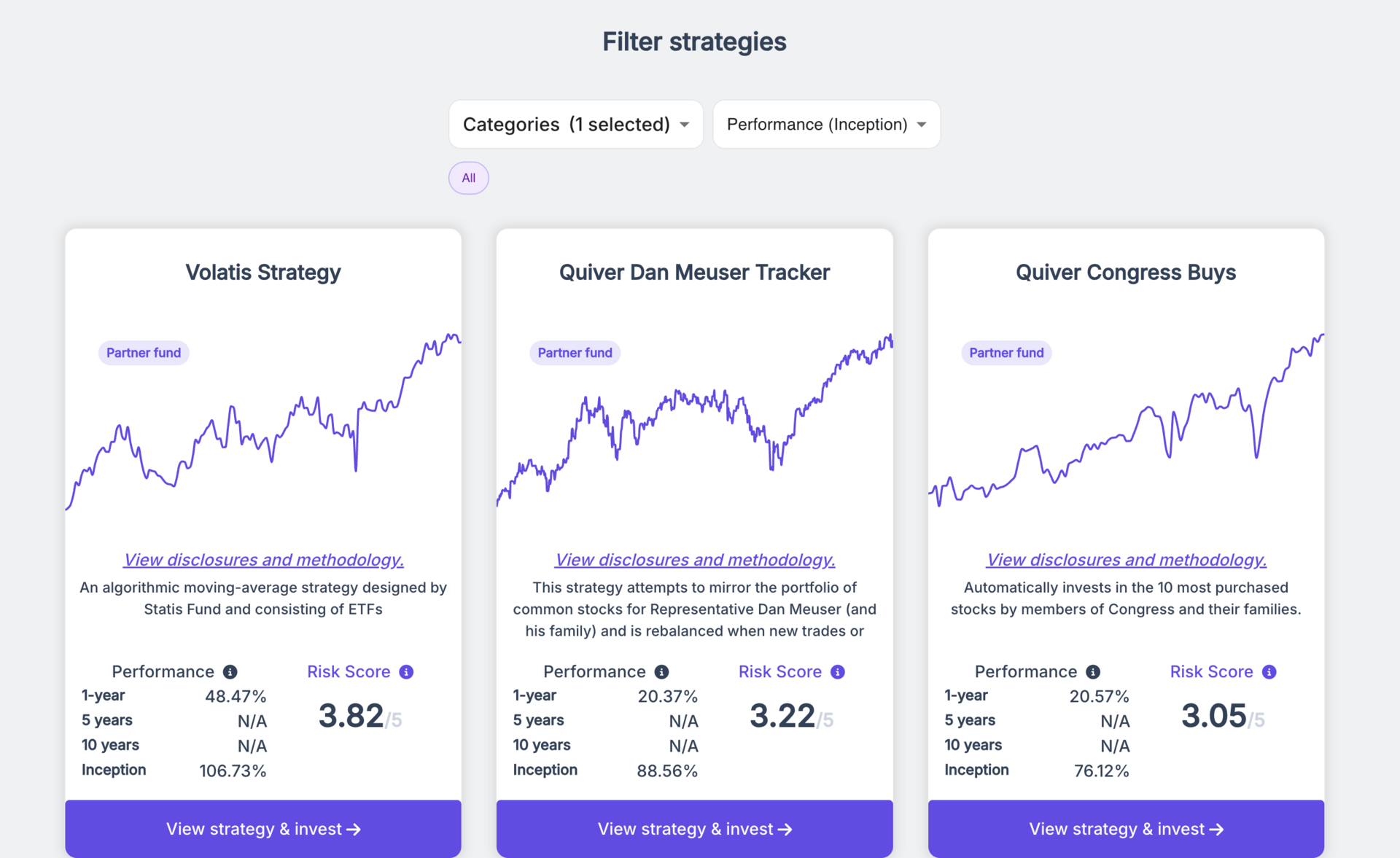 Quantbase offers both rules-based quant strategies and curated copy-trading strategies, including portfolios built on insider-trading signals. Everything runs automatically, letting you follow systematic models without the emotional noise.