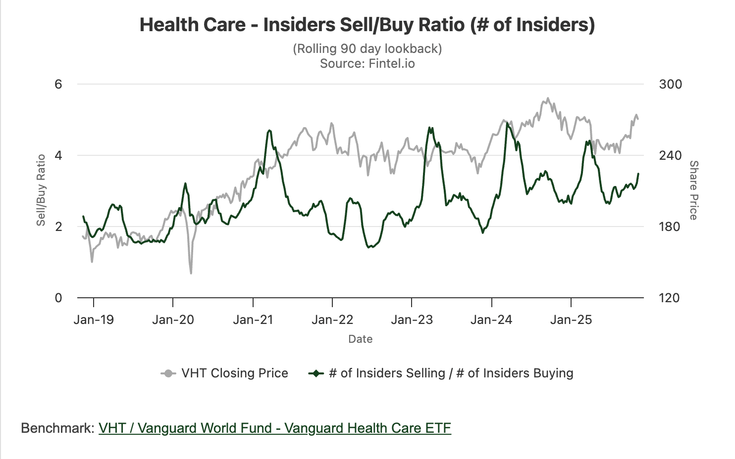 Cigna's David Cordani deploying $1M of personal capital was the week's headline move. Healthcare has been a challenging sector—regulatory uncertainty, drug pricing pressures, and margin compression across managed care. For the CEO of one of the nation's largest health insurers to step in with a seven-figure buy is a direct signal that he believes current valuations overstate the risks. No other meaningful healthcare activity this week, but one $1M buy speaks louder than a dozen option exercises.